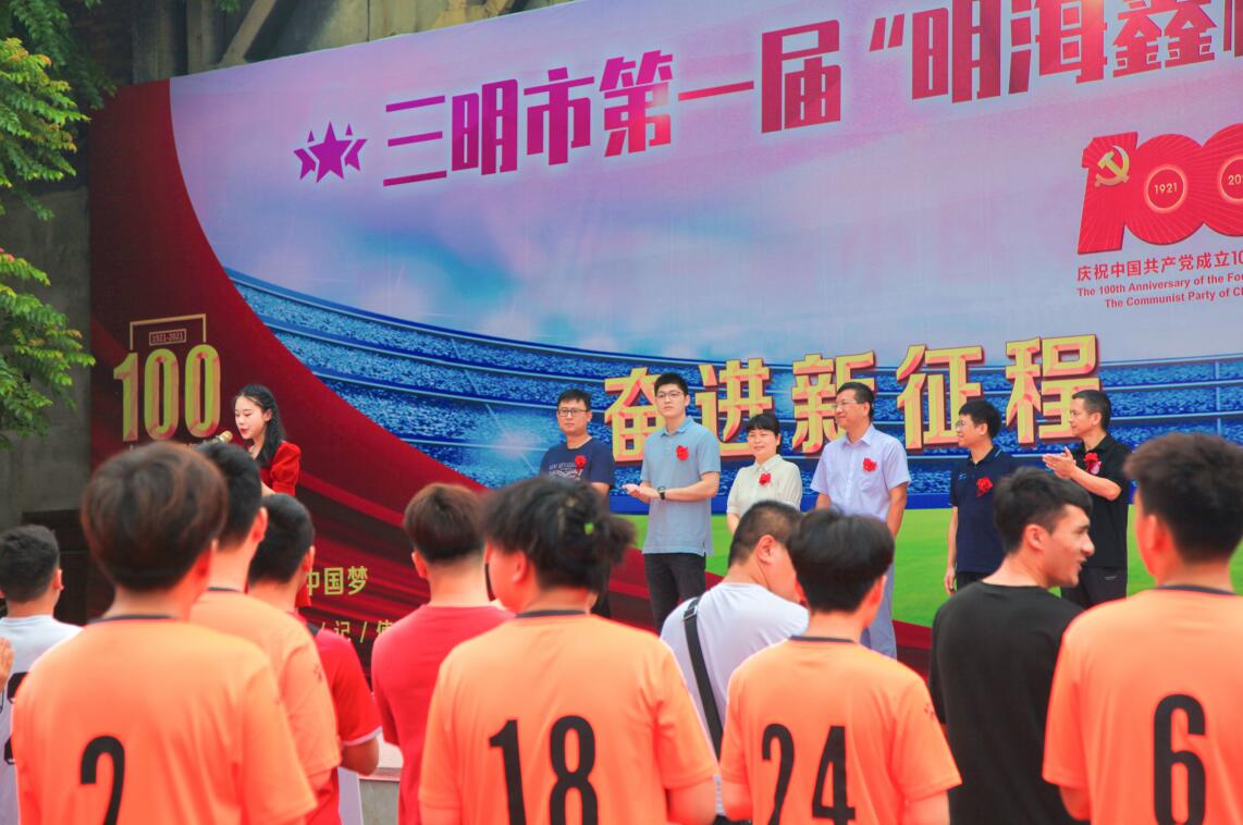 三、公司為獻禮建黨百年華誕,積極參與協(xié)辦由三明市三元區(qū)白沙街道黨工委、辦事處主辦的第一屆“明海鑫杯”足球賽,于6月26日開賽,足球賽參賽單位共計14個。