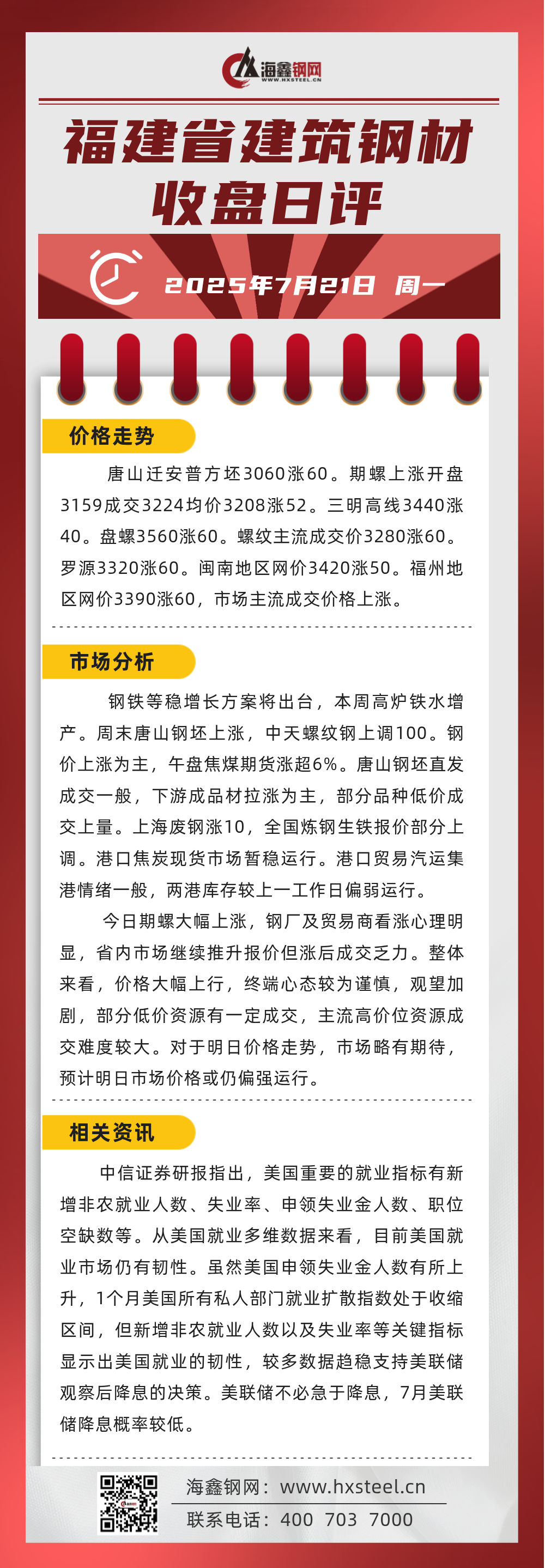 7月21日福建省內(nèi)建筑鋼材收盤日評