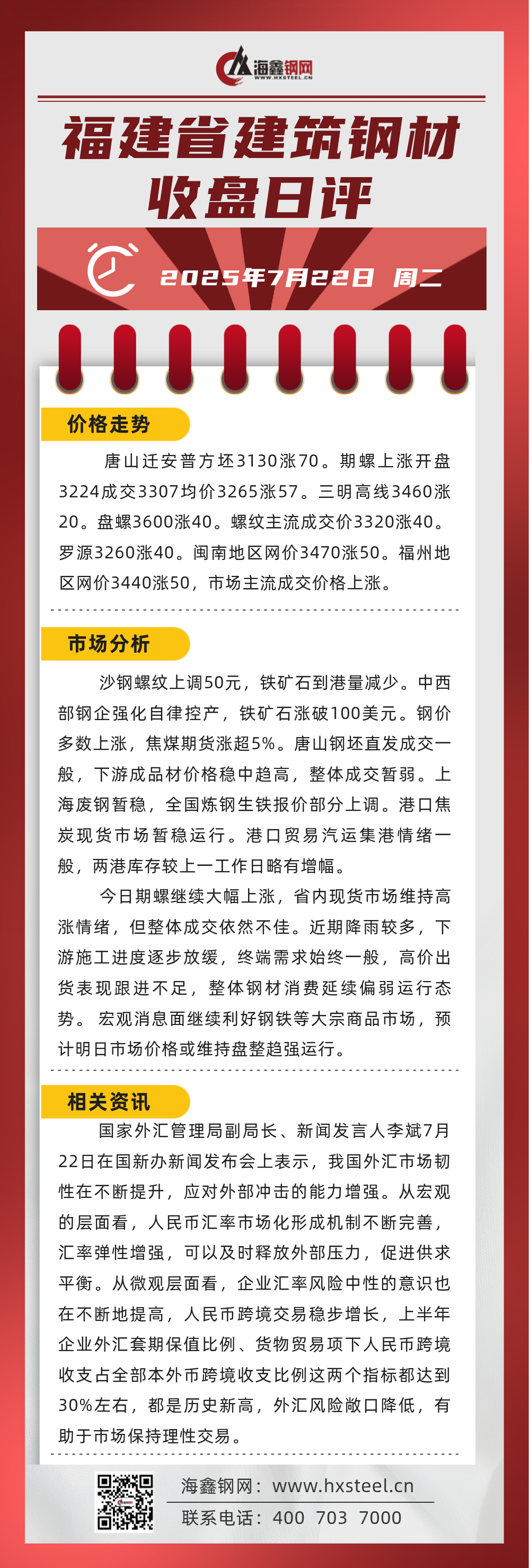 7月22日福建省內建筑鋼材收盤日評