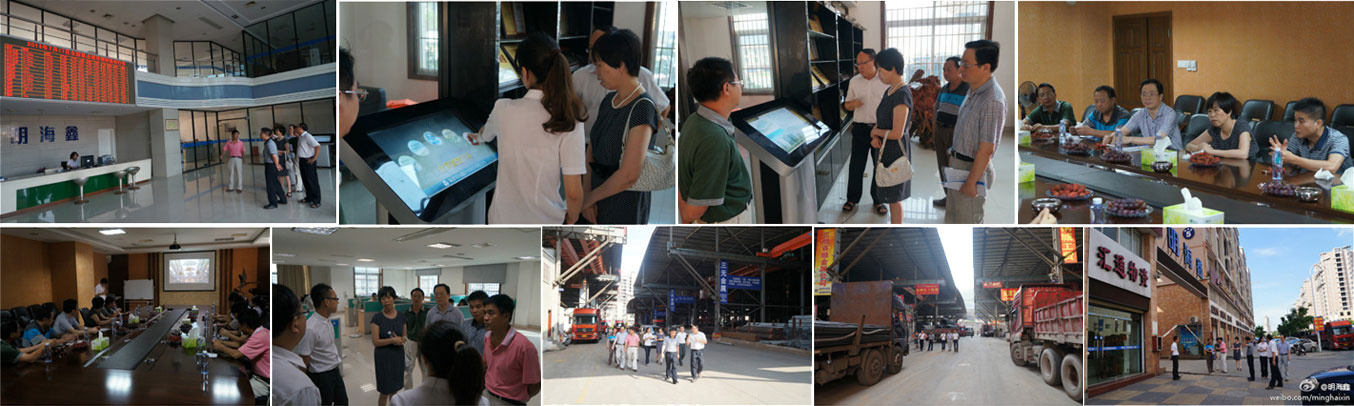 昨日,福建省價格監測中心主任張旭玲在三明市物價局徐海生局長、葛副局長等人的陪同下對福建明海鑫企業股份有限公司鋼材現貨市場價格進行調研。張旭玲主任、徐局長、葛副局長先后聽取了明海鑫領導關于明海鑫鋼材市場誠信經營和明海鑫鋼材市場鋼材現貨價格的采集匯總等情況介紹,參觀了明海鑫鋼材市場。