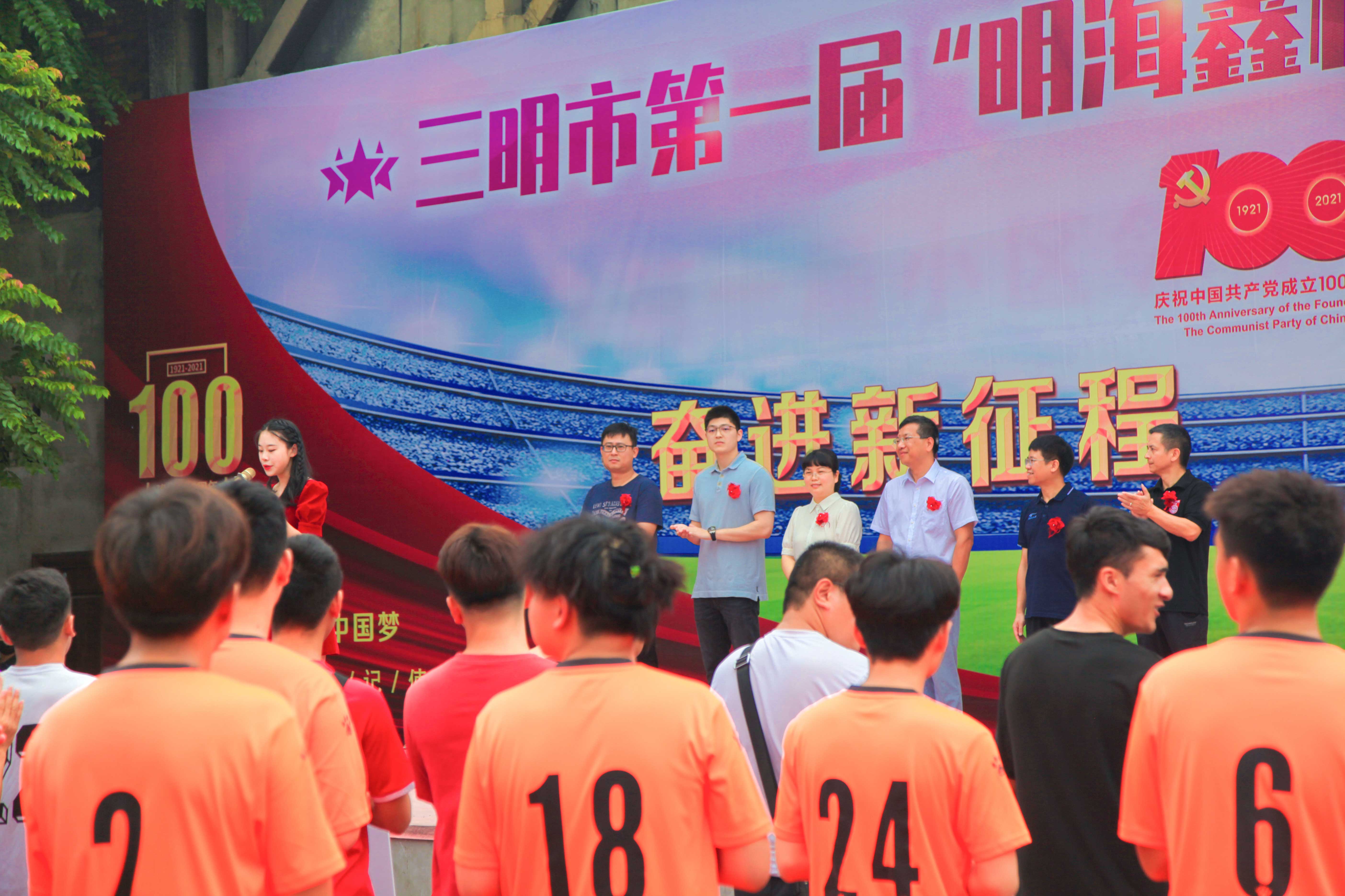 6月26日上午,為獻(xiàn)禮建黨100年誕辰,三明市第一屆“明海鑫杯”七人制足球賽在三明市三化足球場(chǎng)打響。本次賽事由三明市三元區(qū)足球協(xié)會(huì)主辦、三明市三元區(qū)白沙街道協(xié)辦、我司(福建明海鑫企業(yè)股份有限公司)冠名、指導(dǎo)單位為三明市三元區(qū)文體和旅游局。于6月26日上午8:20分開幕,共有14支隊(duì)伍參加比賽,近250余名隊(duì)員進(jìn)行了30個(gè)場(chǎng)次的激烈角逐,爭奪冠軍榮耀。